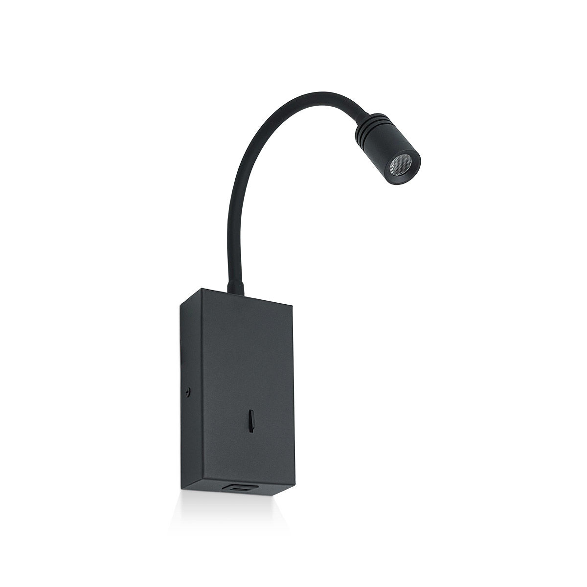 APLIQUE Velador LED Negro 3 Watts c/USB 7.5x14x27.5cm h