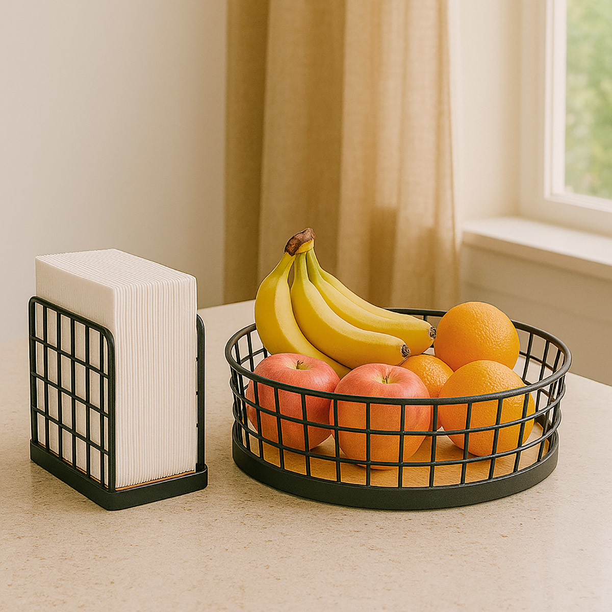 CANASTO Calado Acero Negro y Bamboo 29x8cm
