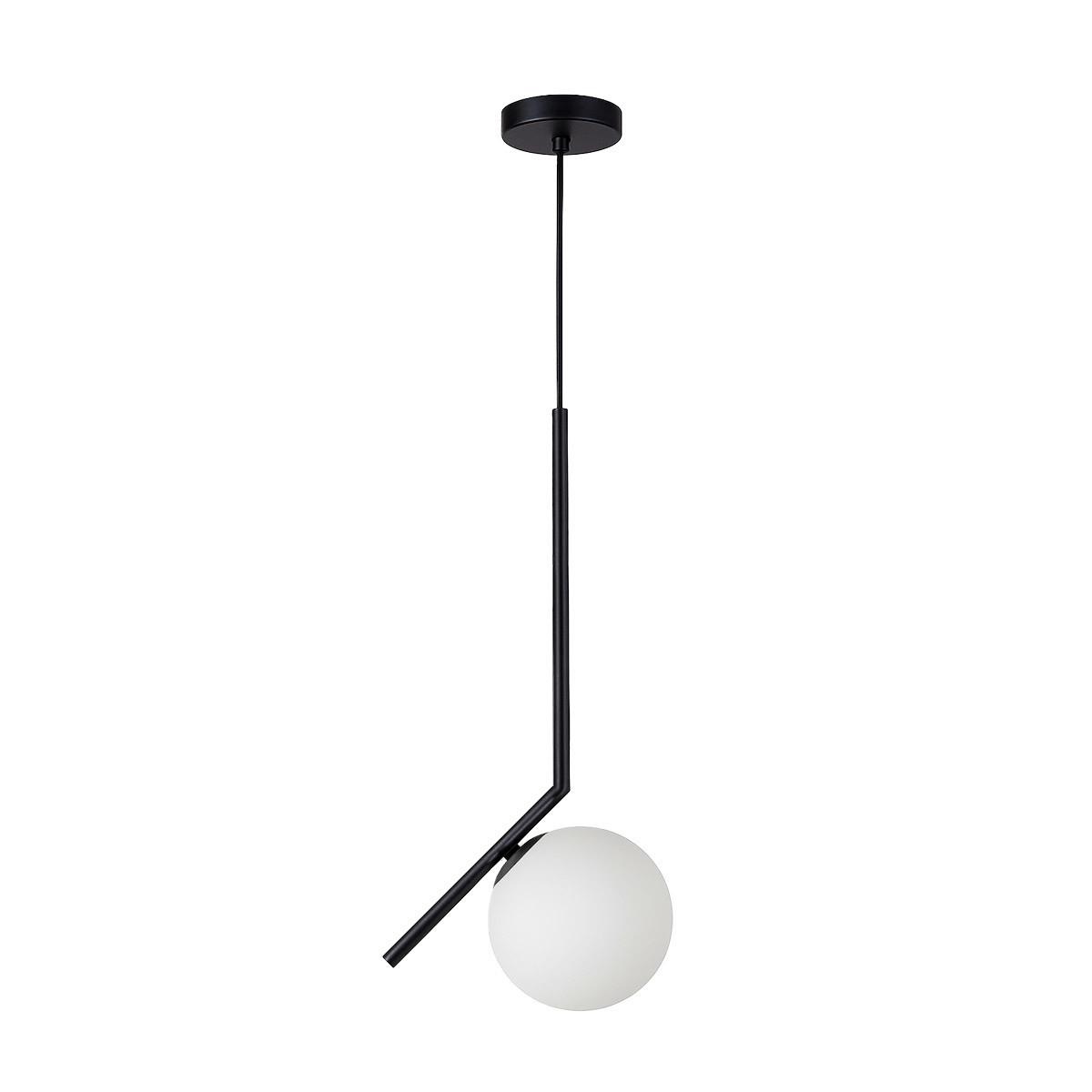 Lámpara colgante de una luz, modelo Aries, con estructura metálica en color negro y difusor de vidrio opal. Su diseño moderno y elegante destaca por su forma estilizada y terminaciones de alta calidad, integrándose con facilidad en distintos estilos y ambientes del hogar. Aplica también en espacios comerciales. De instalación sencilla y altura regulable, ofrece un sistema seguro para el recambio de lámparas. Compatible con lámparas LED, vintage o decorativas con portalámparas E27 (no incluye lámpara).