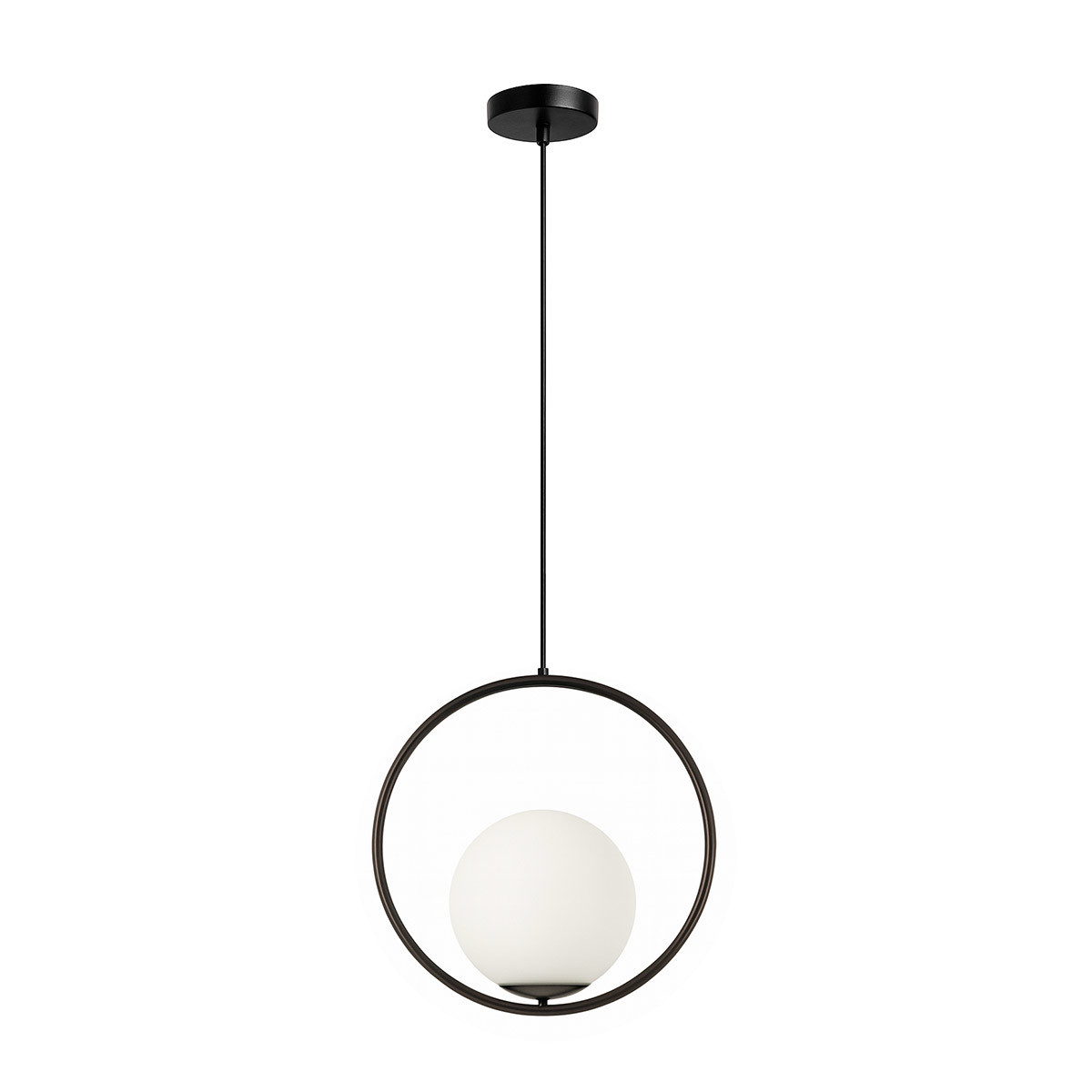 Lámpara colgante de una luz, modelo Lyra, con estructura metálica en color negro y difusor esférico de vidrio opal. Su diseño combina líneas clásicas con un estilo contemporáneo y elegante, aportando equilibrio y luminosidad al ambiente. Se integra con facilidad en distintos estilos y espacios del hogar. Aplica también en espacios comerciales. De instalación sencilla y altura regulable, cuenta con un sistema simple y seguro para el cambio de lámparas. Compatible con lámparas LED, vintage o decorativas con portalámparas E27 (no incluye lámpara).