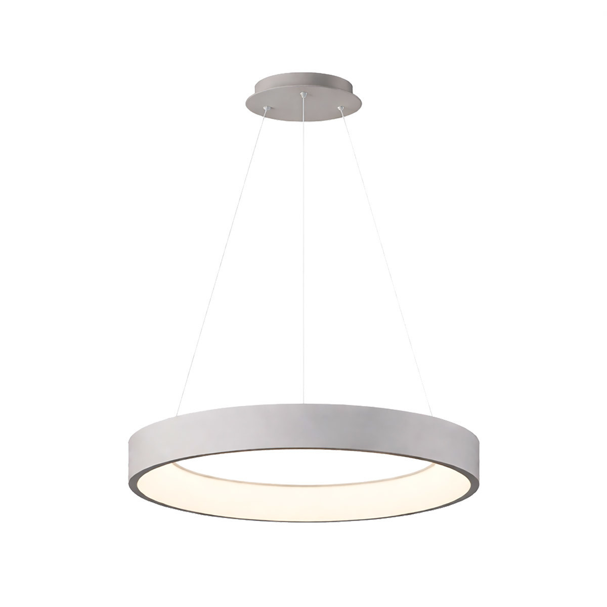 Lámpara colgante modelo UFO, con estructura metálica y difusor de silicona en acabado gris. Su formato circular y minimalista ofrece una excelente distribución lumínica, aportando equilibrio y modernidad a cualquier ambiente. Su diseño versátil se integra con facilidad en distintos estilos y espacios del hogar o en entornos comerciales. Sistema de instalación fácil y altura regulable. Luz LED integrada, tonalidad de luz seleccionable: cálida, fría o neutra. Potencia total 40W.