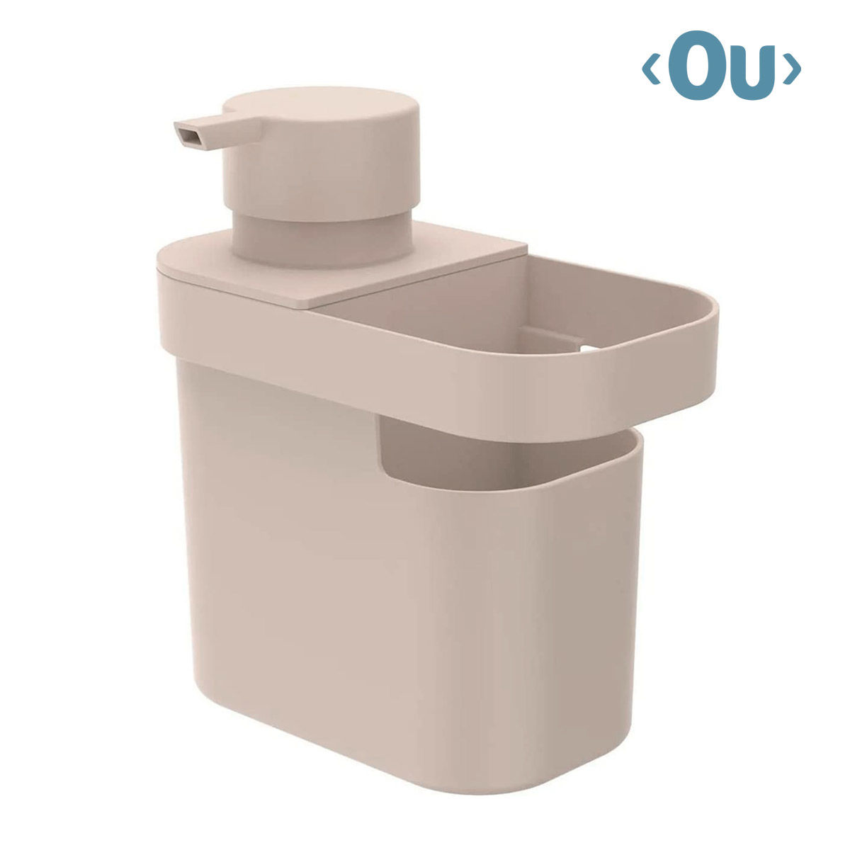 Contenido creado por IA: Dispensador plástico de jabón líquido, con organizador porta esponja Trium, de la marca OU. Fabricado en color Beige Claro. Dispenser de detergente para cocina con capacidad para 650ml de jabón. Incluye organizador porta esponja con orificios para el drenaje del agua. Producto fabricado con polímeros plásticos, mayor tolerancia a golpes y caídas. Recarga sencilla. Válvula especialmente desarrollada para activarse con un ligero toque.La marca brasilera OU se destaca por la calidad y el diseño de vanguardia que imprime en cada una de sus creaciones. Aplicable en baños, cocinas, decoración en general y horganización del hogar.