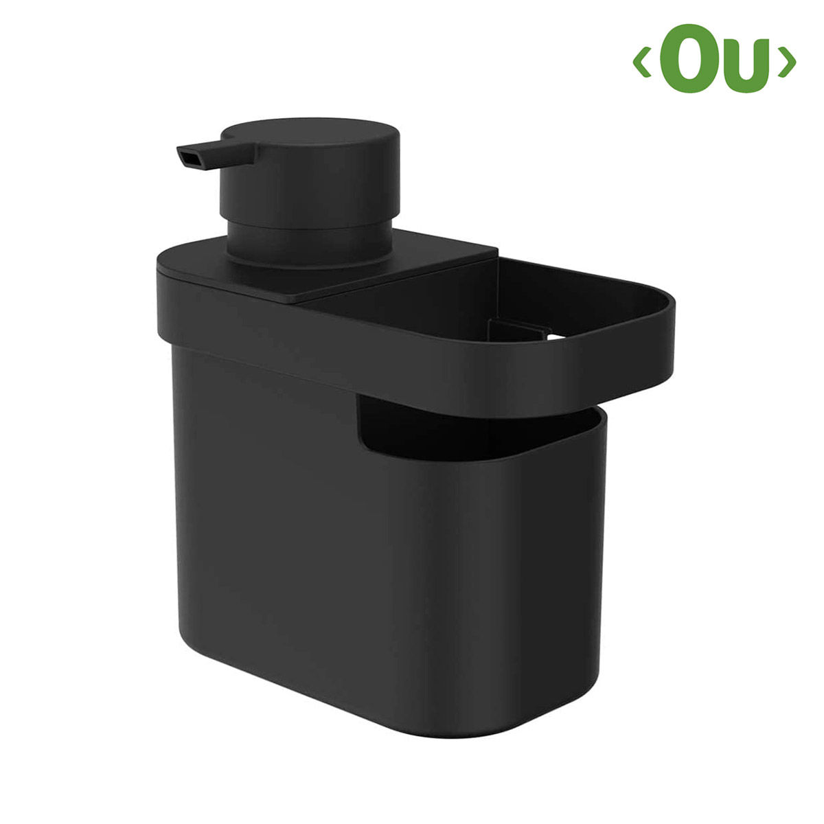 Contenido creado por IA: Dispensador plástico de jabón líquido, con organizador porta esponja Trium, de la marca OU. Fabricado en color Negro. Dispenser de detergente para cocina con capacidad para 650ml de jabón. Incluye organizador porta esponja con orificios para el drenaje del agua. Producto fabricado con polímeros plásticos, mayor tolerancia a golpes y caídas. Recarga sencilla. Válvula especialmente desarrollada para activarse con un ligero toque.La marca brasilera OU se destaca por la calidad y el diseño de vanguardia que imprime en cada una de sus creaciones. Aplicable en baños, cocinas, decoración en general y horganización del hogar.