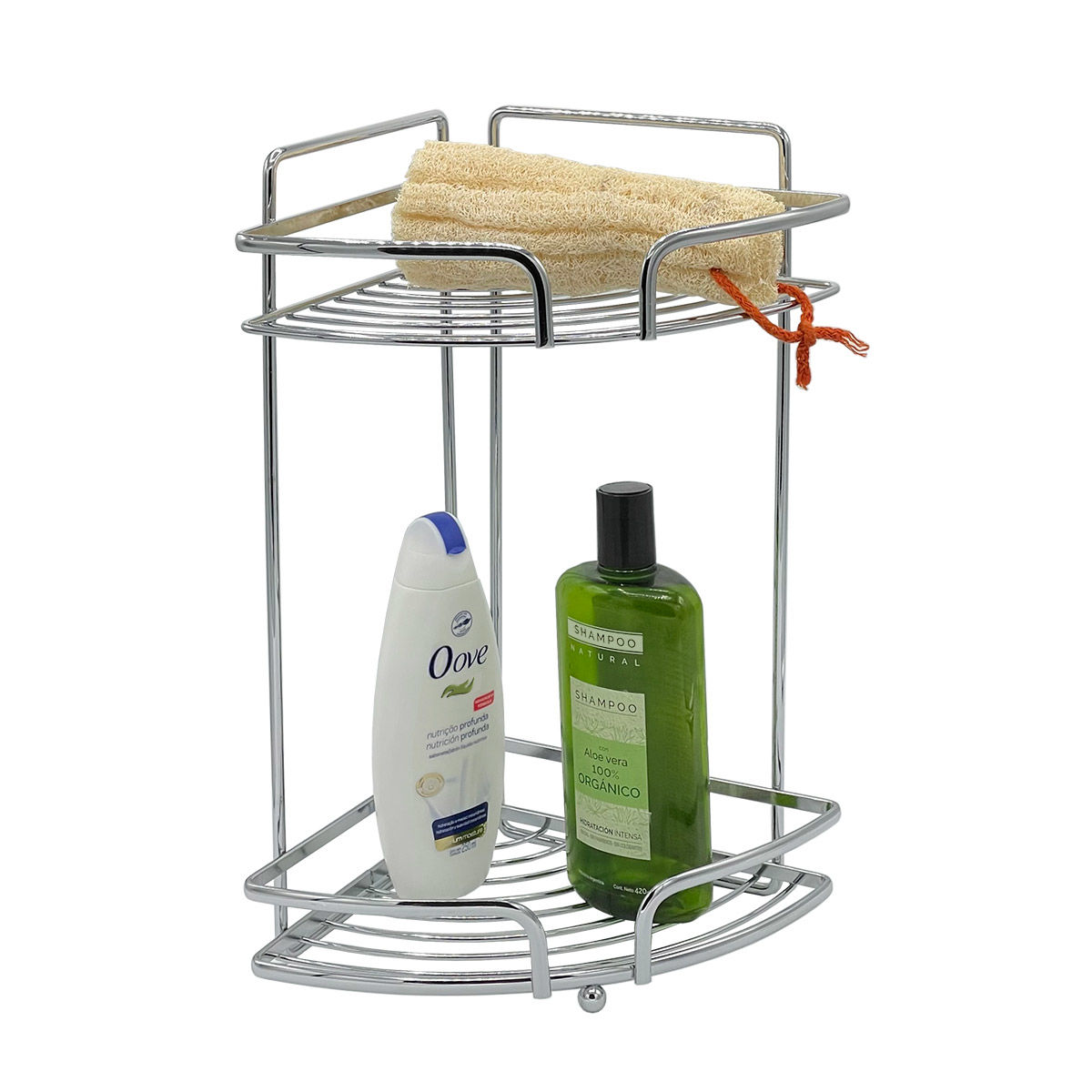 Repisa Esquinero de 2 Estantes para Ducha Organizador de Baño. Fabricado en Metal acero carbono y con terminación Cromo Brillante. Resistente al peso. Fácil de limpiar. Escurre con Facilidad. Tu duchero o bañera organizada. Incluye Kit de Colocación.