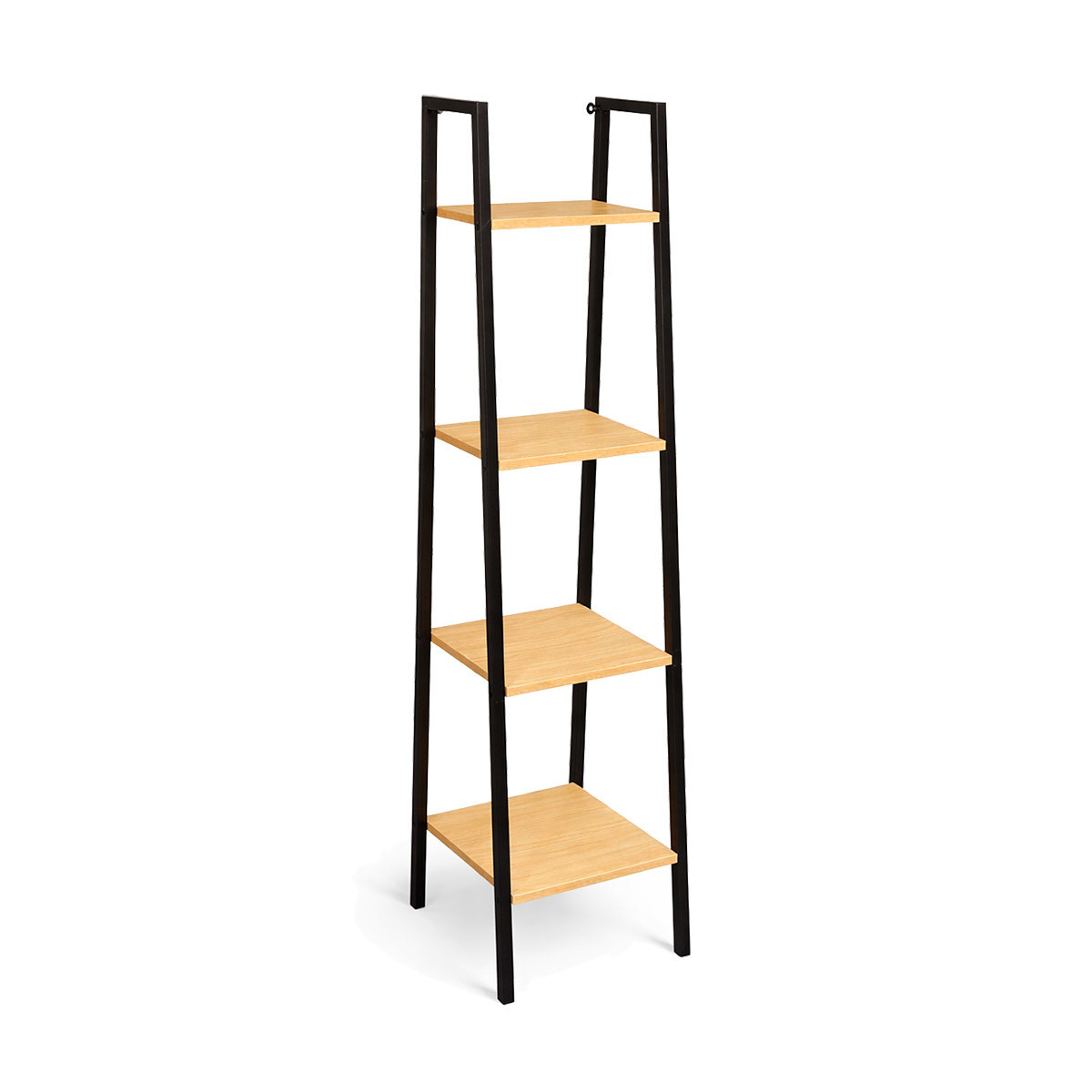 Estantería Metálica Negro y Madera 4 Estantes 34x33x138cm H