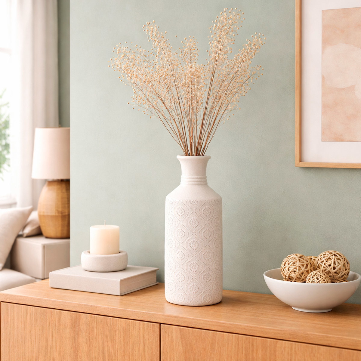 FLORERO Ceramica Etnico Blanco Ø11x31.5cm