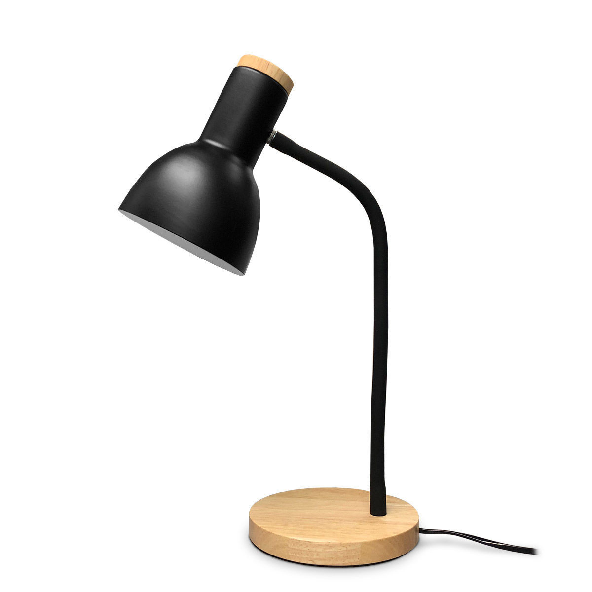 LAMPARA Mesa Danesa E27 Negra/Madera 43cm H /Ø 15cm