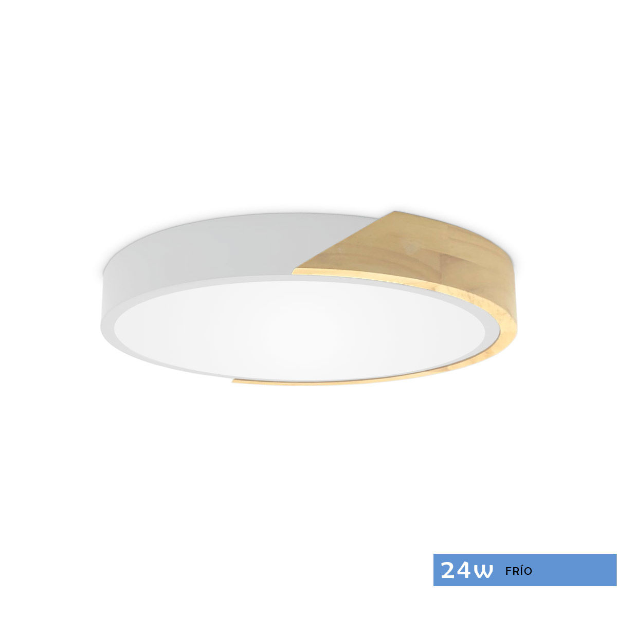 PLAFON Luminaria Nórdico PANEL LED 24W Frio Madera y Blanco