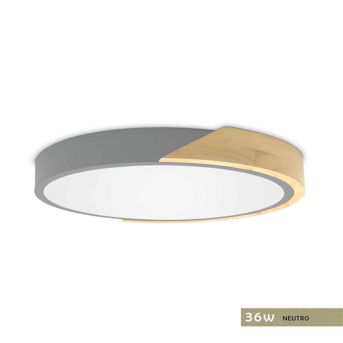 PLAFON de Aplicar en el Techo, PANEL LED 36W de luz Neutra. Diseño Nórdico que combina la Madera y el color Gris. Moderno, se puede utilizar en cualquier ambiente de la casa. Luminaria de Adosar, muy sencillo de instalar. La fuente de luz LED de ahorro de energía tiene una larga vida útil de más de 30.000 horas. Artefacto de excelente calidad que cumple con los estándares europeos de fabricación. La mejor luminaria decorativa para interiores.