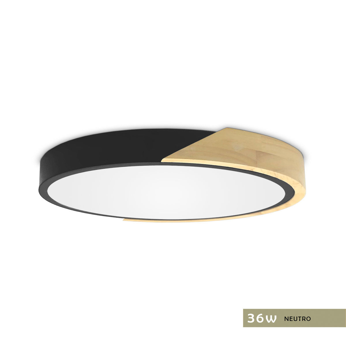 PLAFON de Aplicar en el Techo, PANEL LED 36W de luz Neutra. Diseño Nórdico que combina la Madera y el color Negro. Moderno, se puede utilizar en cualquier ambiente de la casa. Luminaria de Adosar, muy sencillo de instalar. La fuente de luz LED de ahorro de energía tiene una larga vida útil de más de 30.000 horas. Artefacto de excelente calidad que cumple con los estándares europeos de fabricación. La mejor luminaria decorativa para interiores.