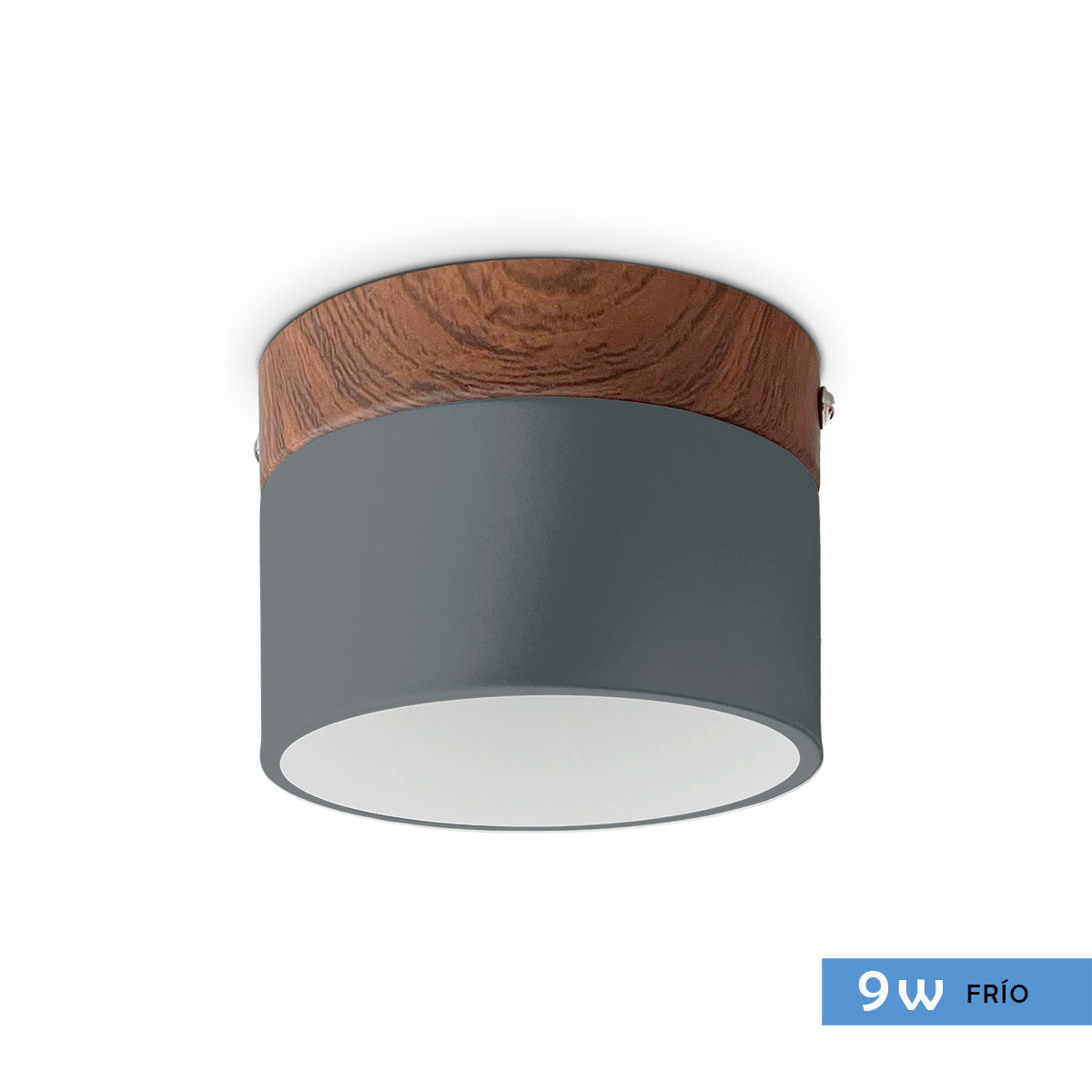 PLAFON Luminaria Nórdico Mini PANEL LED 9W Frio Madera y Gris