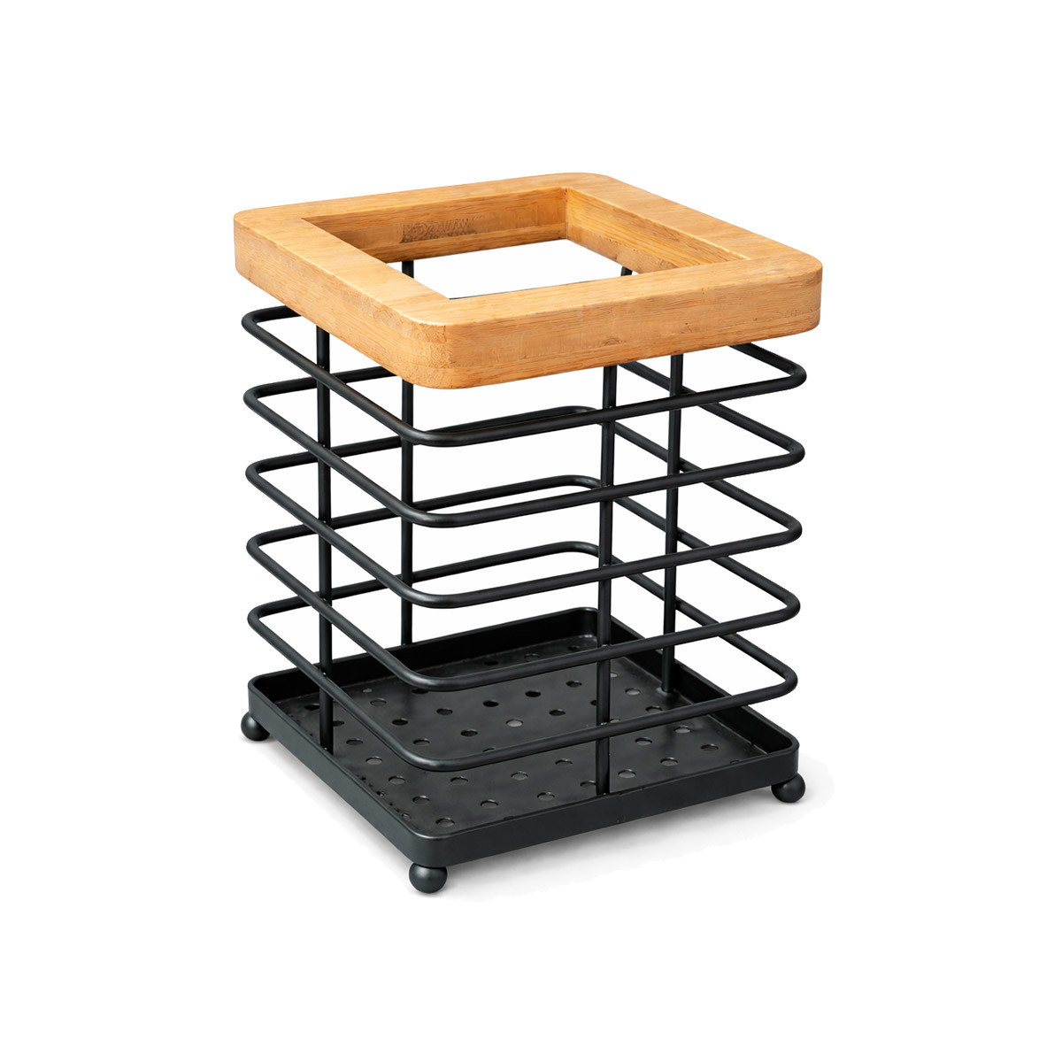 Portacubiertos Prisma Negro con Madera 10.5x10.5x15cm H