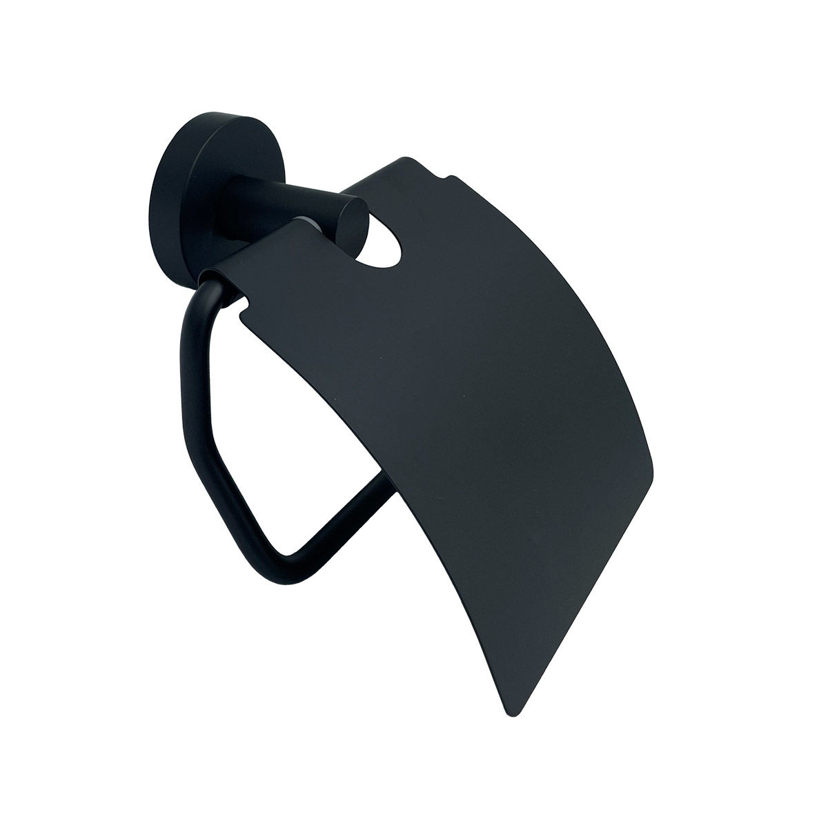 PORTAROLLO, Soporte para papel de baño con tapa Negro Mat