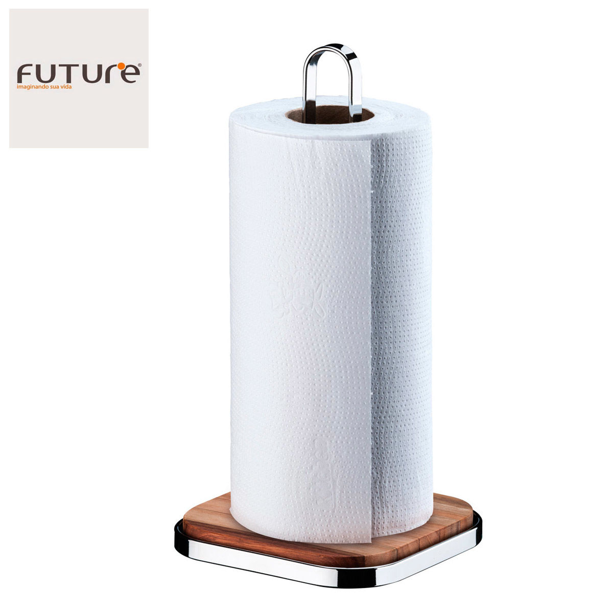 PORTAROLLO de Cocina Cromado/Base Madera FUTURE 14cm x 28cmh