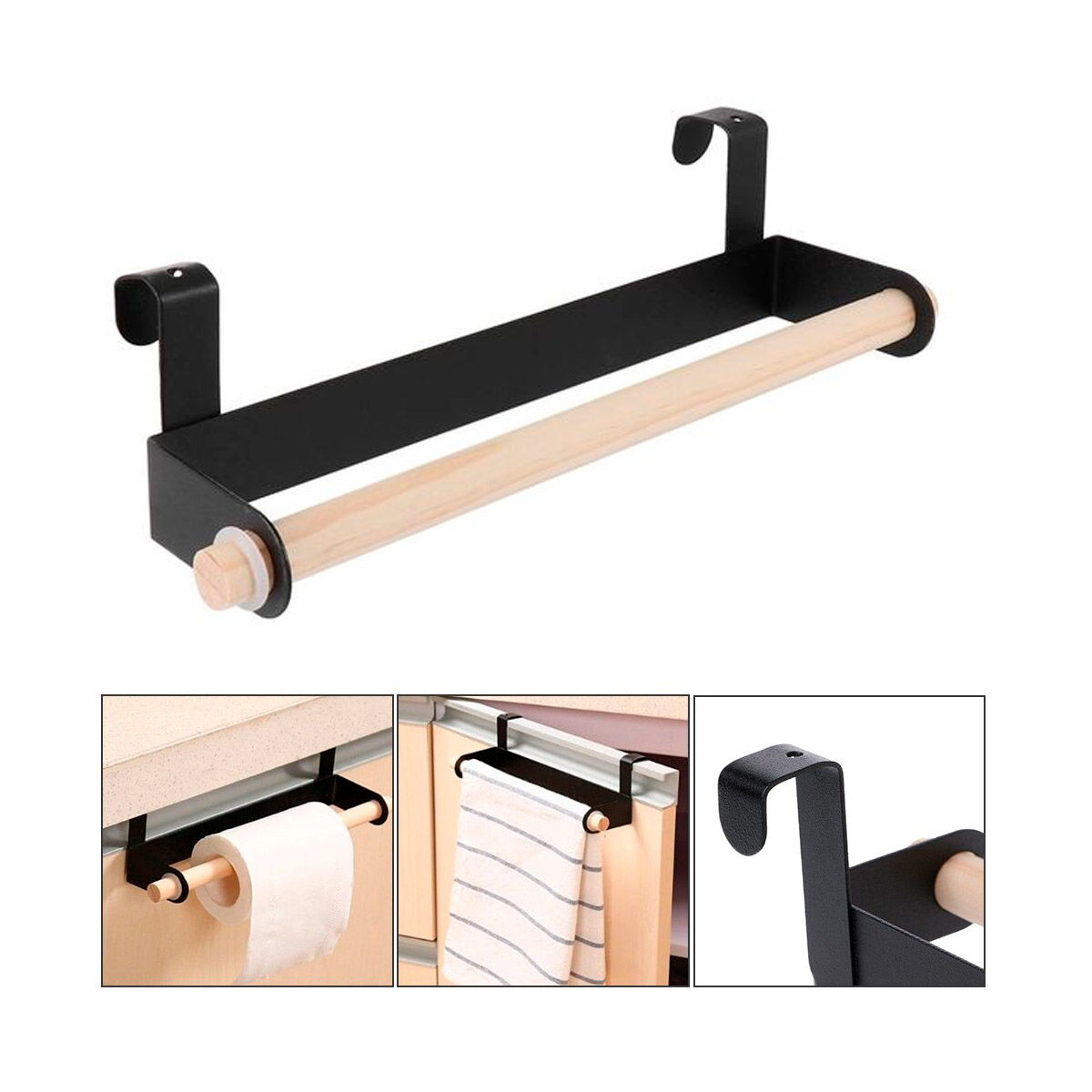 Portarollo p/puerta Negro/Madera 26x6.5cm