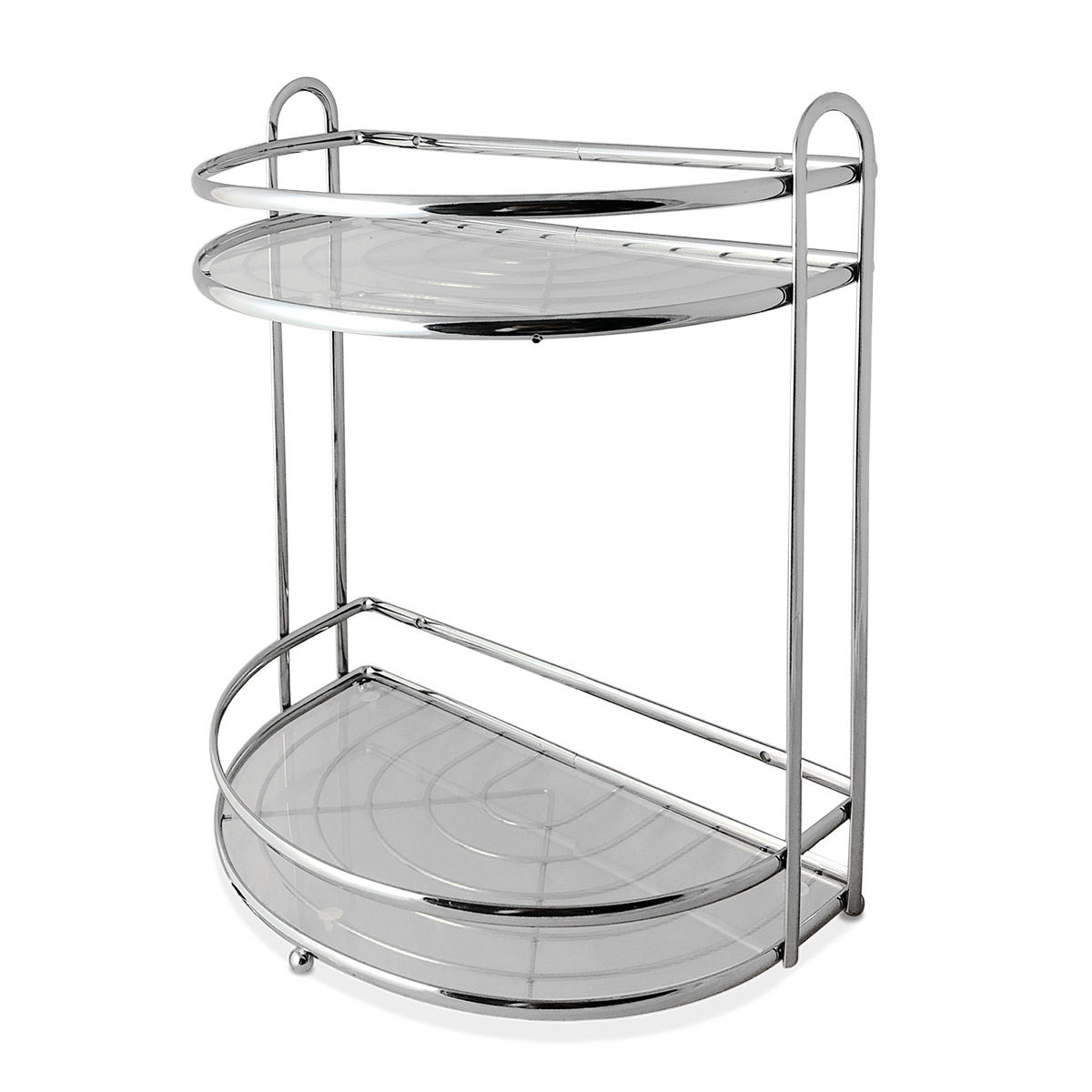 Repisa de 2 niveles con frente curvo, estantes doble para Ducha Organizador de Baño. Fabricado en Metal acero carbono y con terminación Cromo Brillante. Resistente al peso. Fácil de limpiar. Escurre con Facilidad. Tu duchero o bañera organizada. Incluye Kit de Colocación.