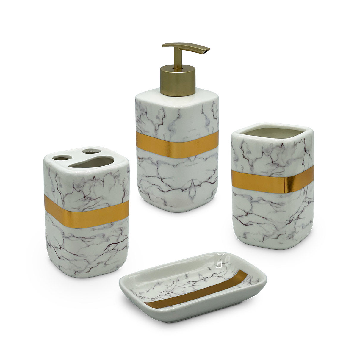 TerminaciónBlanco con vetas simil Marmol y Detalle en Dorado