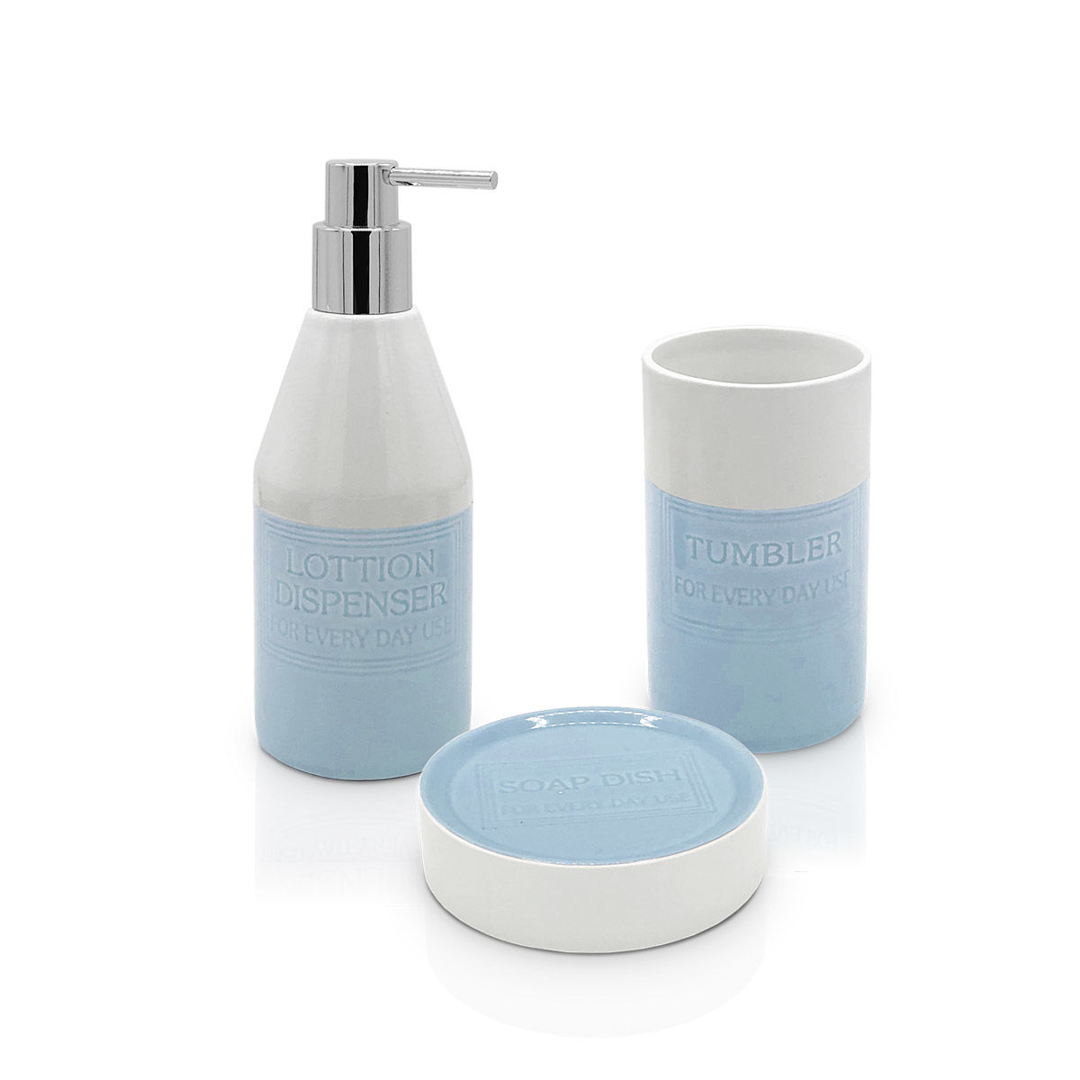 Set de Ceramica 3 Piezas Bicolor Celeste