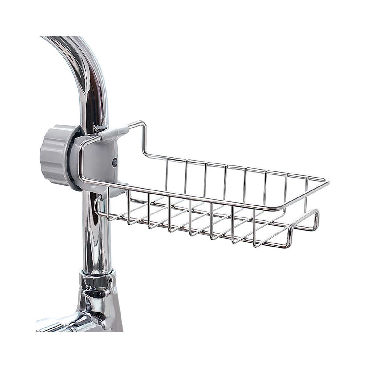 Soporte cromado porta esponja, tapones o filtros de cocina para instalar en la grifería. Se puede usar tambien para baño para colocar el jabón. Fácil colocación. Liviano. Se adapta a la medida del cuello de la grifería.