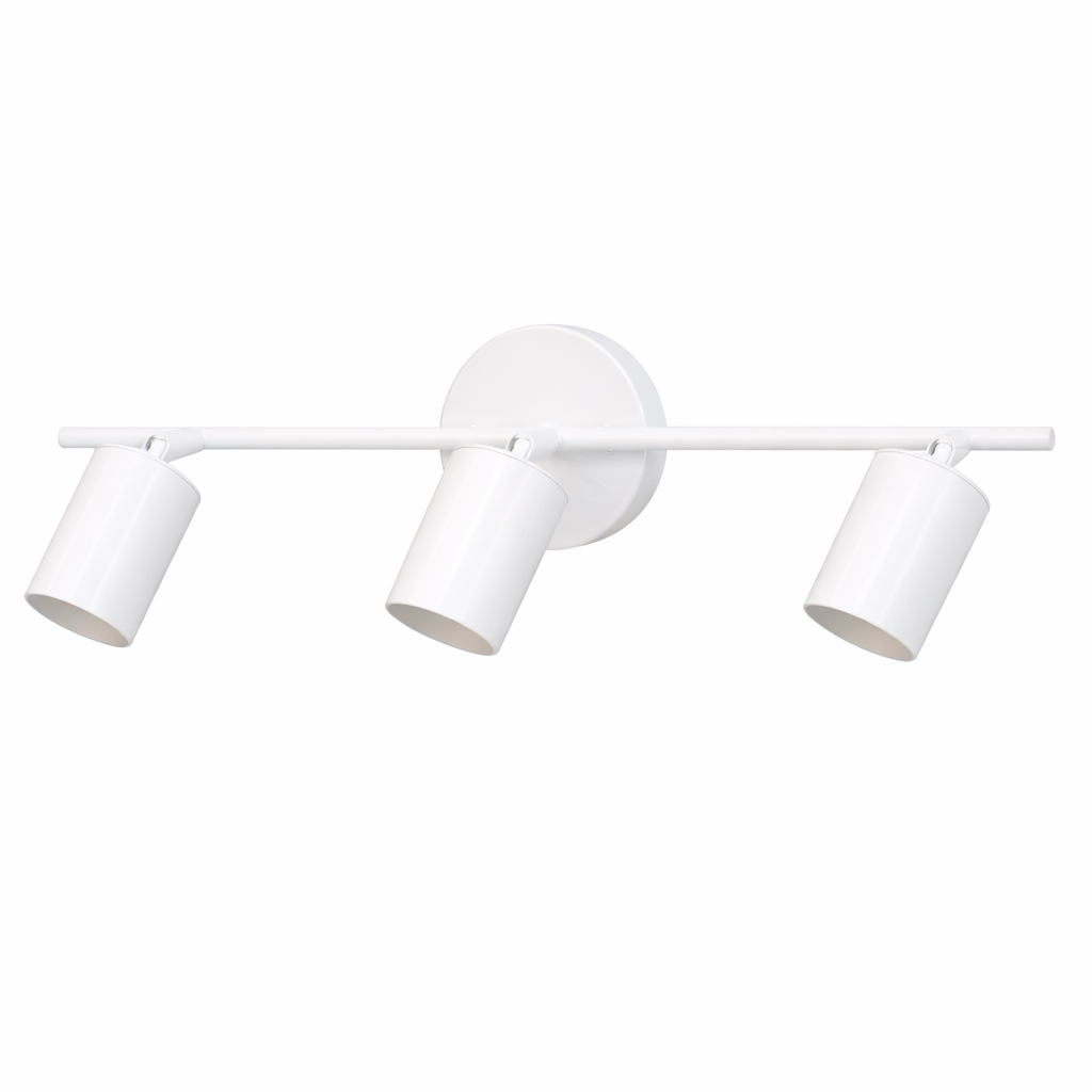 Spot de techo o pared modelo Canon, fabricado en aluminio con acabado blanco. Presenta tres cabezales orientables en formato cilíndrico, lo que permite dirigir la iluminación de forma precisa y funcional. Su estilo minimalista y moderno lo hace ideal para integrarse en distintos estilos y ambientes del hogar o espacios comerciales. Ofrece un sistema simple para el cambio de lámparas, con instalación fácil y estándar. Compatible con lámparas LED tipo GU10 (no incluye lámparas).